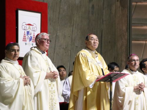 左から駐日教皇大使モリーナ大司教、オロリッシュ枢機卿、菊地枢機卿、アンドレア司教