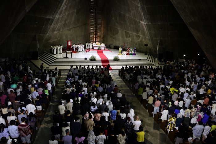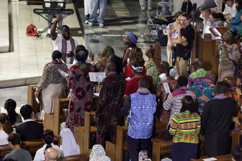 ミサには様々な国籍の約800人の信徒が参列し、急遽、大量のパイプ椅子が聖堂内に並べられるほどであった。 ミサに先立って、午後5時からは各国の伝統芸能が披露され、会衆はベトナム語やビルマ語の歌や舞踊を楽しんだ。 ミサは基本的に英語で行われたが、朗読や聖歌、各種祈願には日本語をはじめ、フランス語、リンガラ語(コンゴ)、ベトナム語、韓国語、スペイン語、ビルマ語、ドイツ語、インドネシア語も用いられ、カテドラル内は多様な言語の響きとリズムに包まれた。