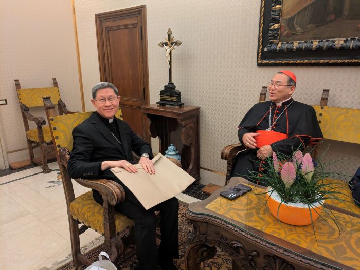 教皇庁にて、偶然出会った福音宣教省副長官アントニオ・タグレ枢機卿と語らう