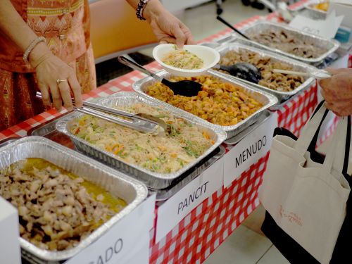 ミサの後は教会の屋内外のさまざまな場所で、各国の手作り料理が振る舞われ、参加者たちを楽しませた。