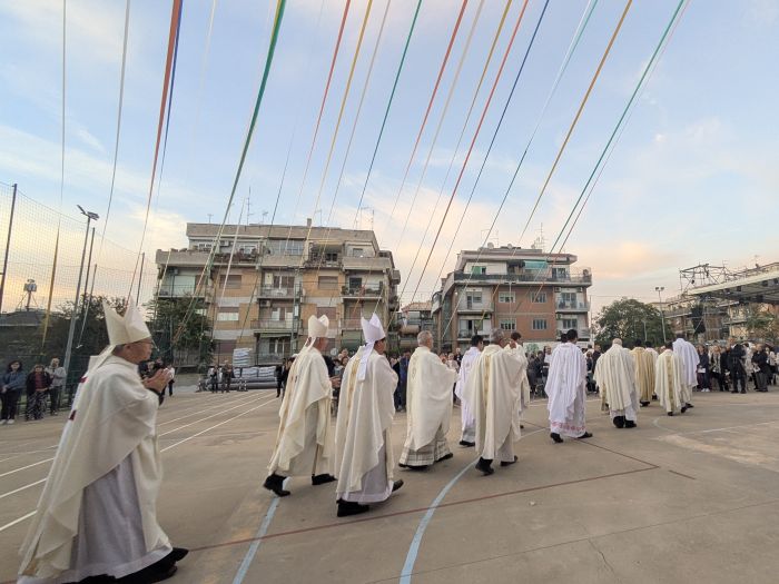 10月は菊地枢機卿さまに同行してローマに行きました。枢機卿としての名義教会での着座式のためです。その小教区はローマ郊外にあります。どちらかというと貧しい地域です。しかし、本当にあたたかく枢機卿さまを迎え入れてくださいました。子どもも、若者も、大人も、老人もみんなで喜んで海の向こうからやってきた高位聖職者を自分たちの仲間として受け入れてくれたのです。素朴で、しかも飾らない歓迎でした。そこにいる誰もが人生の哀しみという十字架を担っているのでしょう。誰もが「貧しさ」を生きているのでしょう。だからこそ、見も知らないわたしたち日本人を受け入れてくれたのです。「ありがたい」ことです。