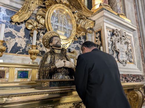 ローマ、ジェズ教会にて聖フランシスコ・ザビエルの聖遺物を崇敬する菊地枢機卿